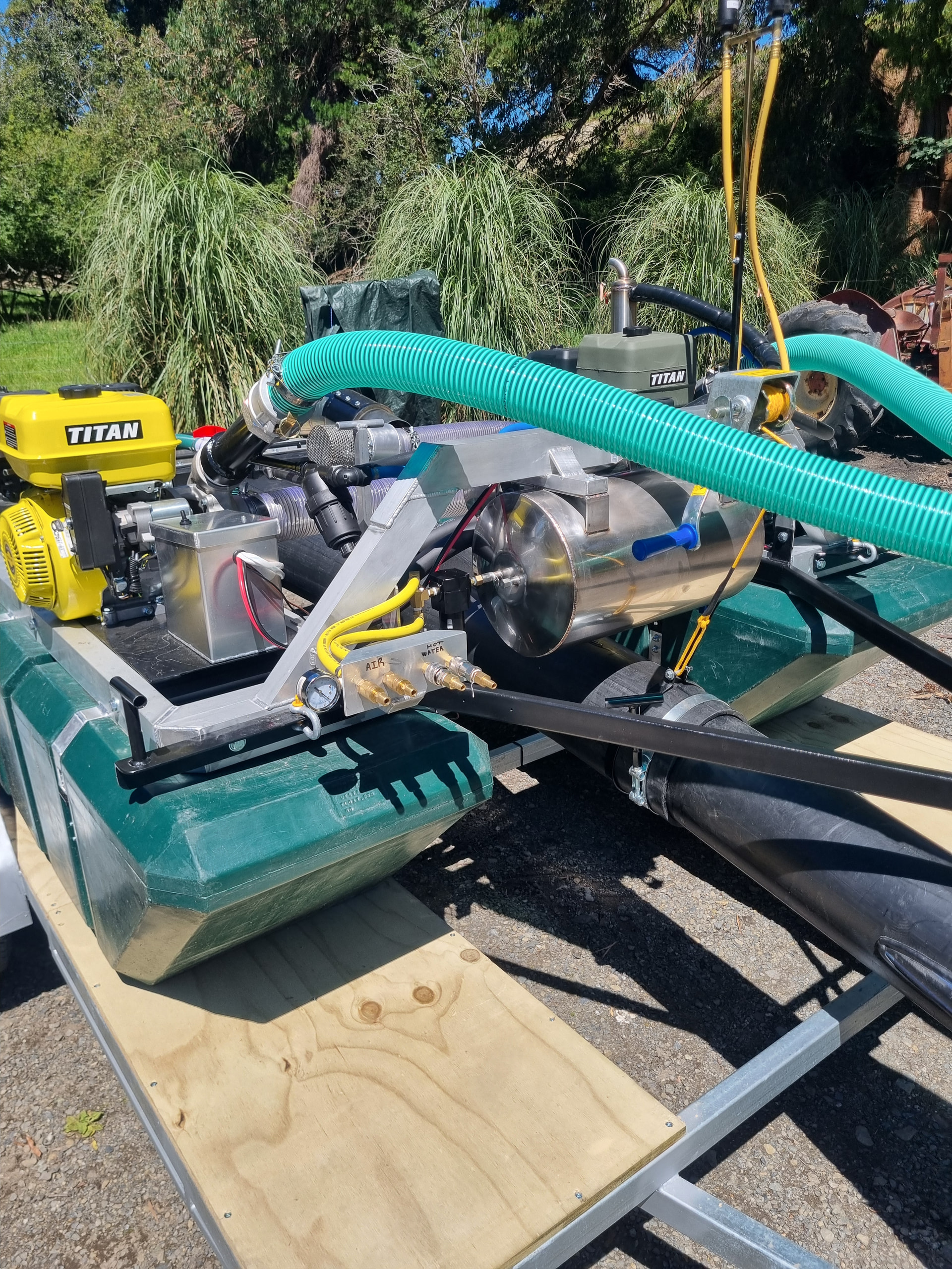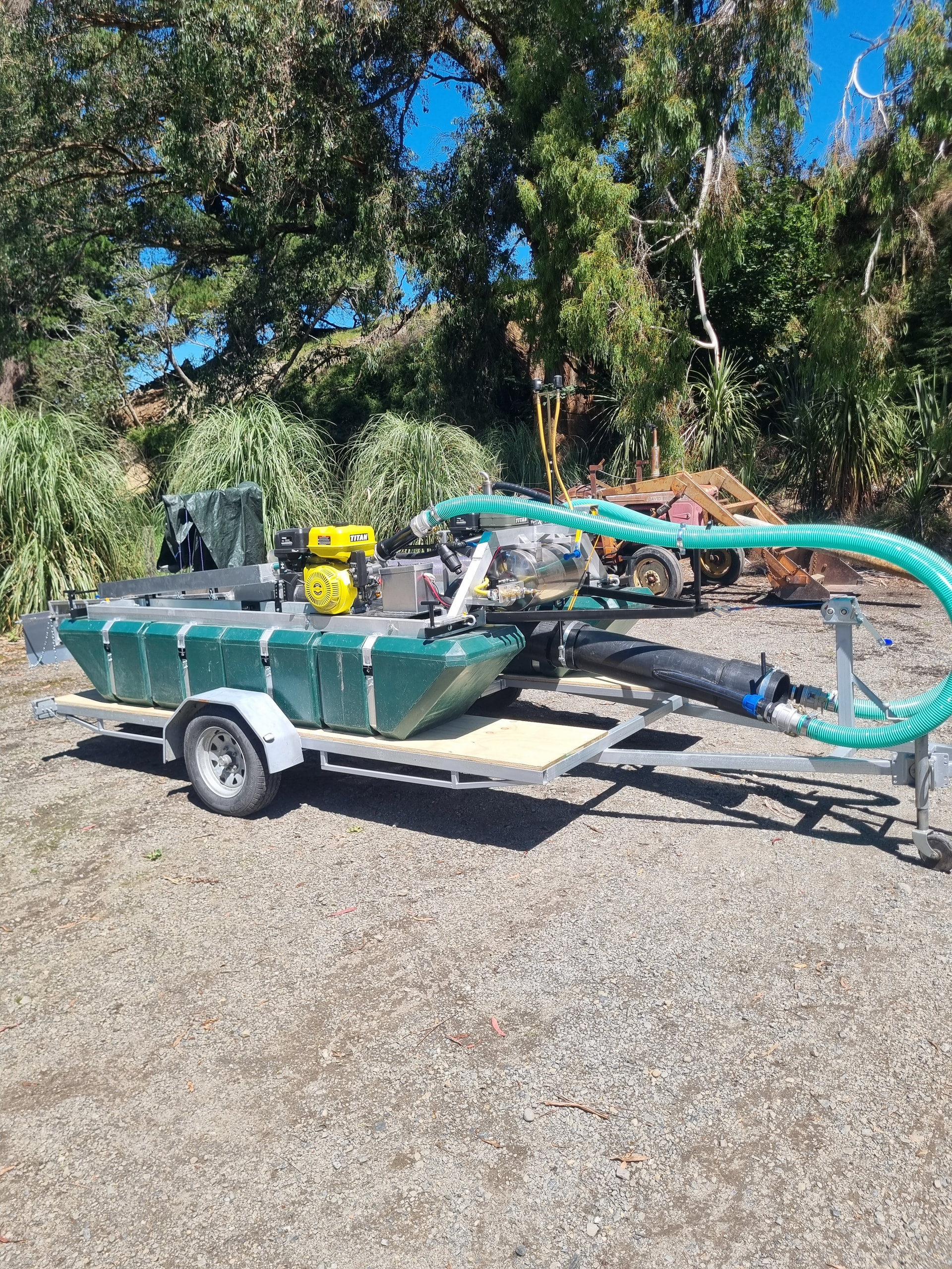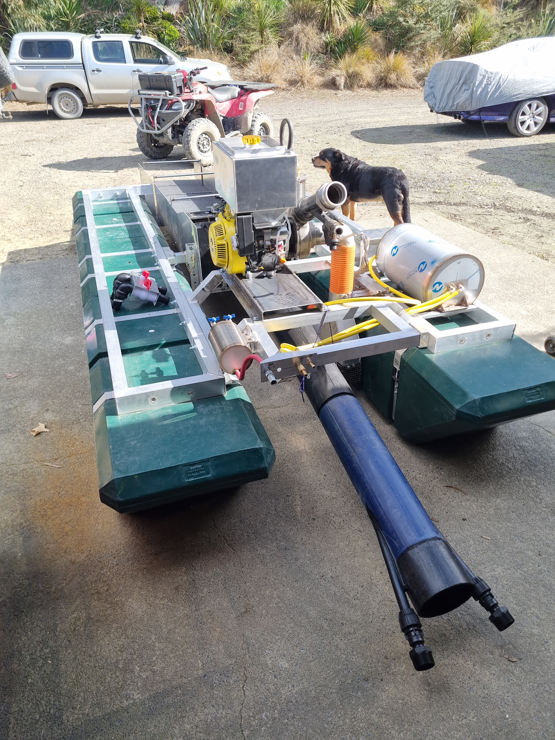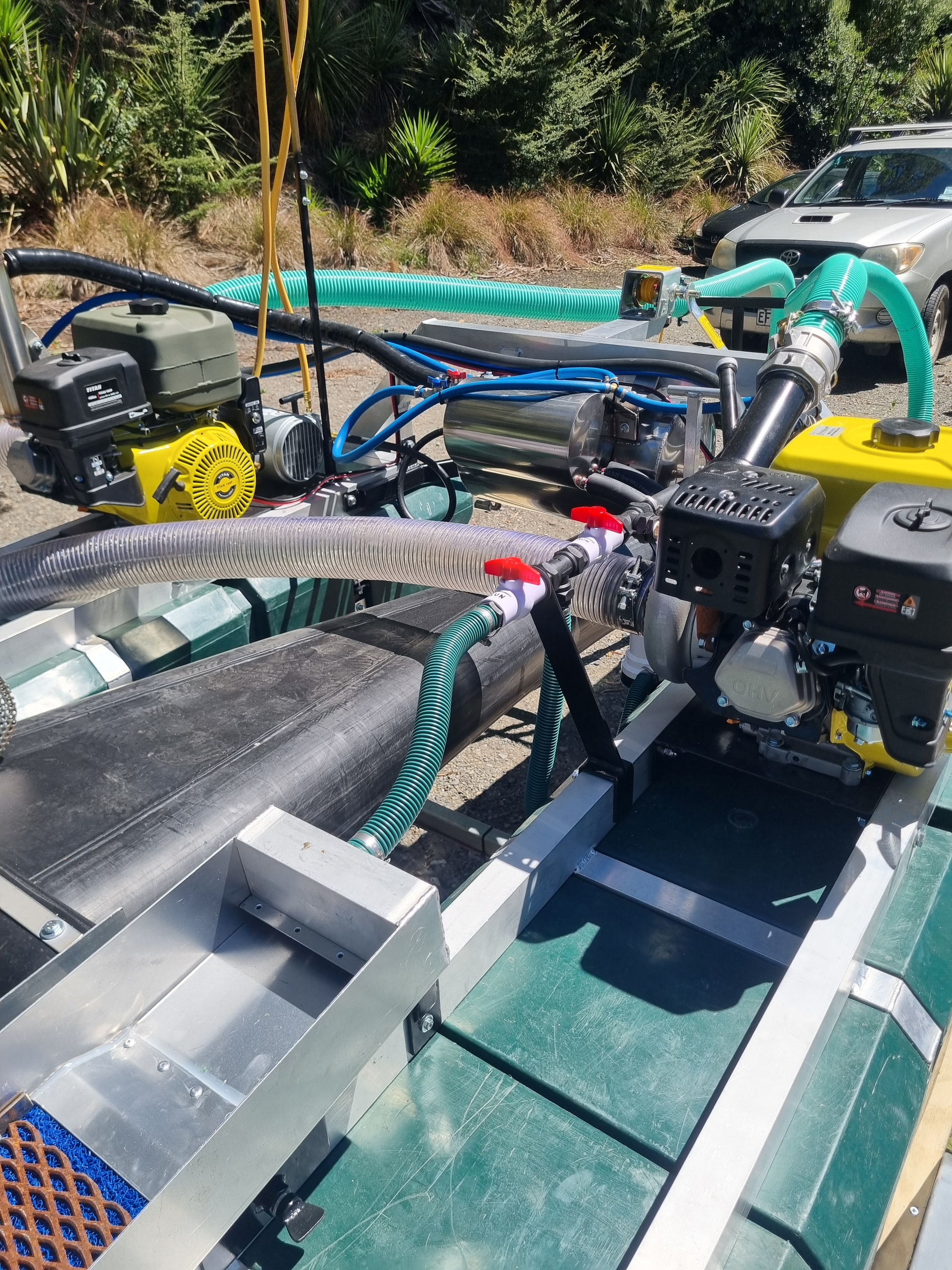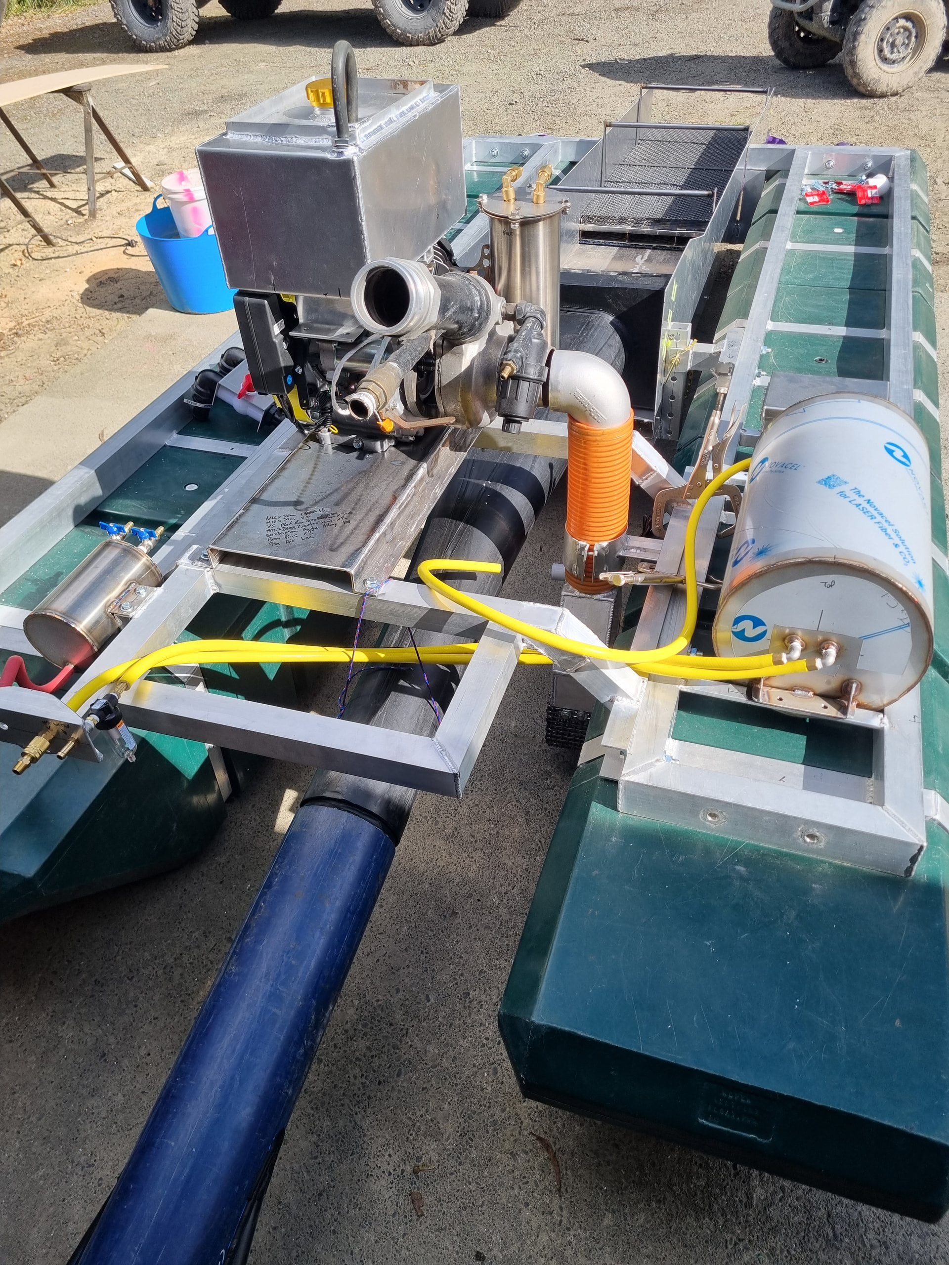 Also a few pictures of my massive 6inch dredge with many of the same features and more, including a hotted up motor with 20litre custom fuel cell, 3 stage sluice with 4m of total sluice length and lots more!