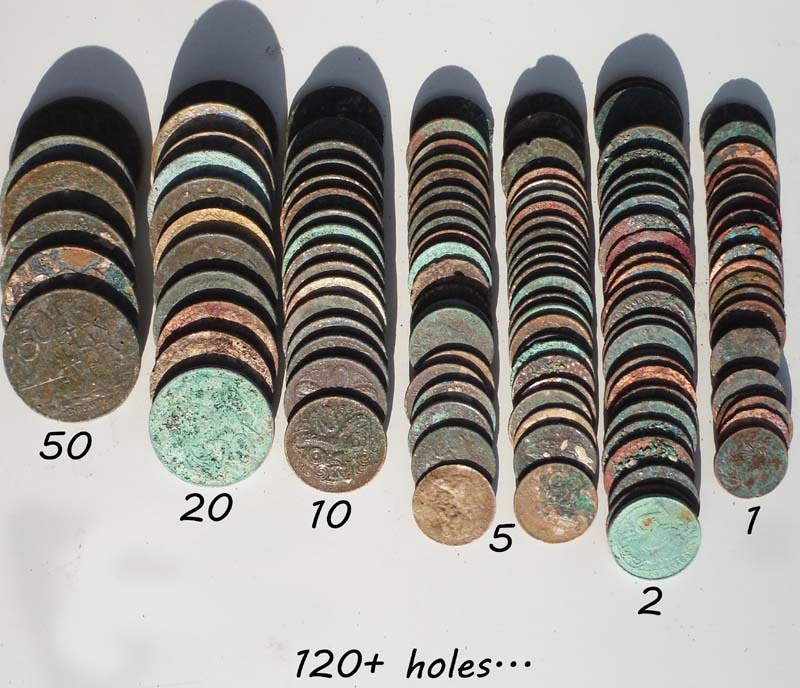 I started a lazy zig-zag picking up the odd 1 & 2c in the surface then that solid high note in the phones - $2 goldie, then another and another. Oh yeah.