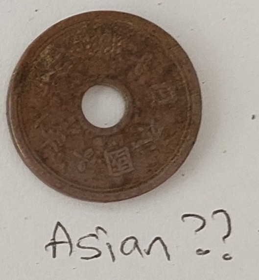 Asian coin is Japanese 5 Yen