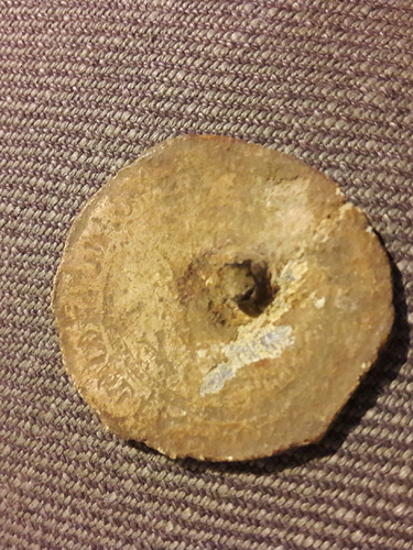 Hubby took one look at it and said “Freeze plug out of an engine block”. I’ll take his word for it