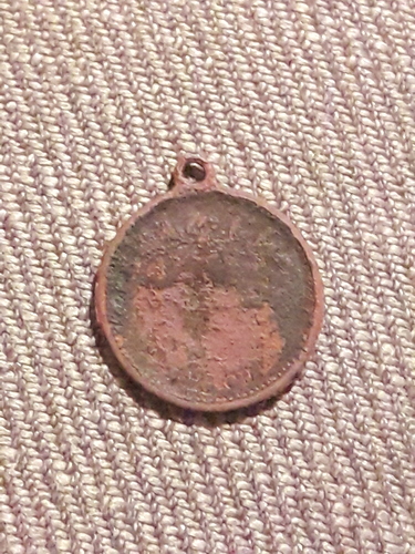 Going back through my old decimals i found this medallion is about the size of a 1cent peice. After a soak in oil the words ‘industrial ex??? 1901’ appeared.