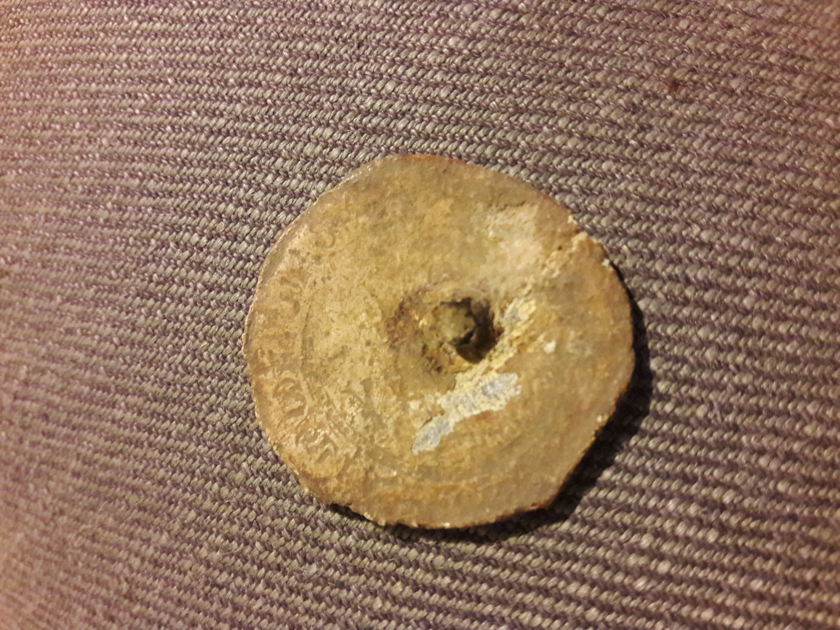 Had a couple of nights detecting with the Rotorua Mob. Found my first beautiful old .925 english silvers and some other bits and wotzits that i need to clean up. Found this bit of lead about same size as a penny. Unreadable lettering around edge- any ideas on what it is? And how do i clean up lead?.